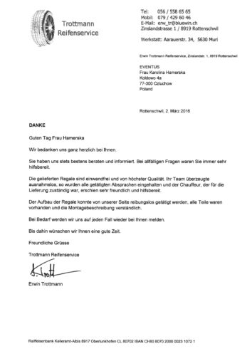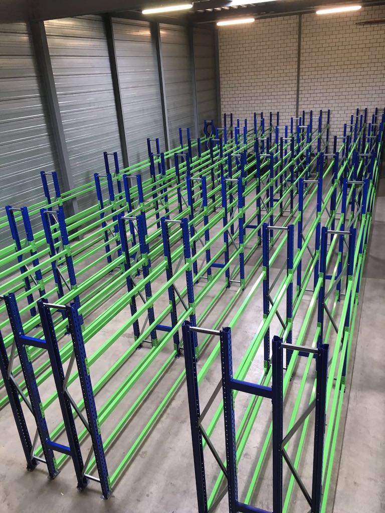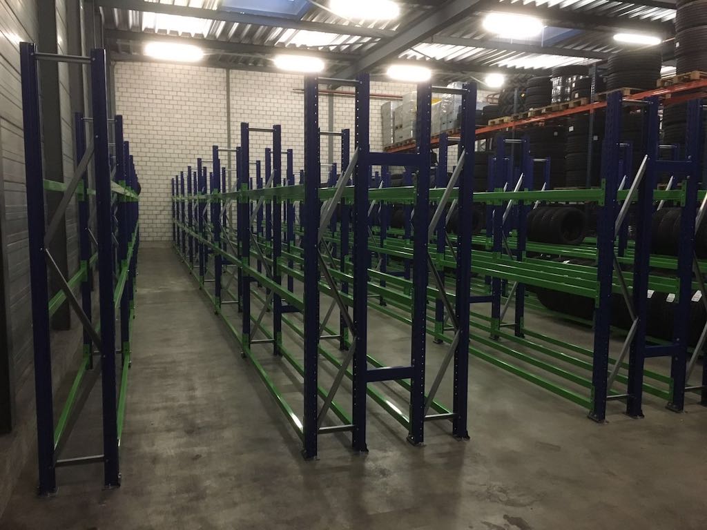 Sprzedaż i dostawa regałów do składowania kół. Projekt zakłada możliwość rozbudowy systemu jednopoziomowego o kolejne piętra. Montaż zrealizowany przez Klienta.
